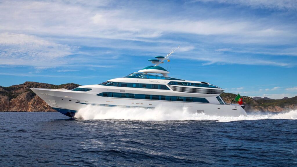 Alamshar has always been known for her speed. She was built to move faster than most yachts her size, and that performance-led approach is still a defining part of her character.